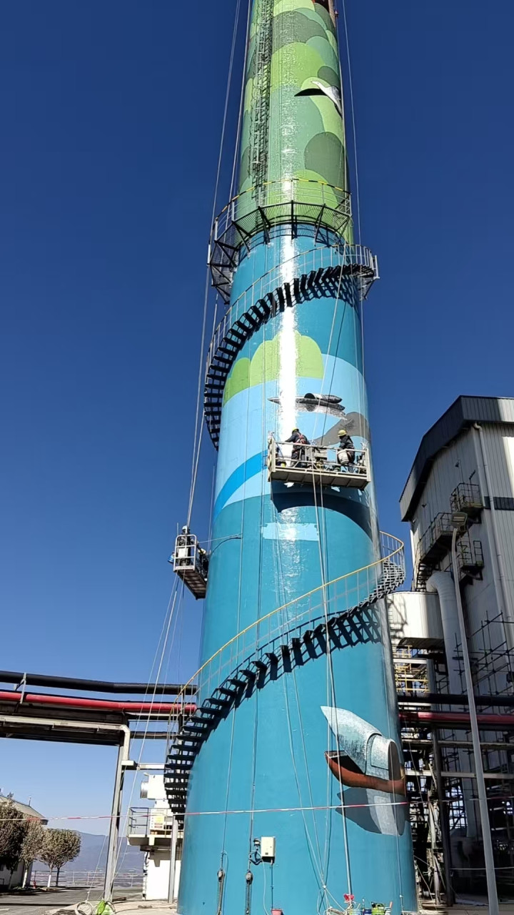 烟囱翻新涂料粉刷工程竣工 防护焕新双达标